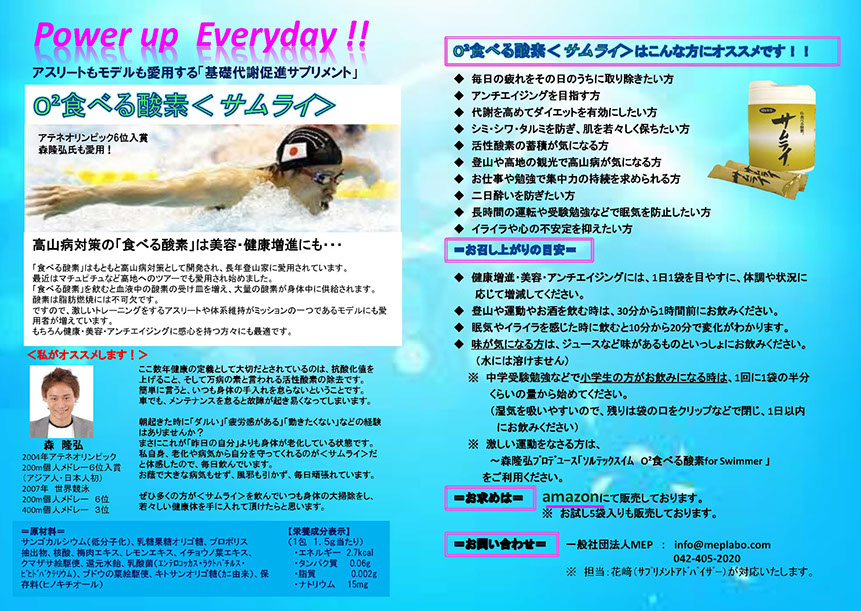 原材料及び内容量は「O2食べる酸素サムライ」と同様の効果が期待できるお得な商品です。